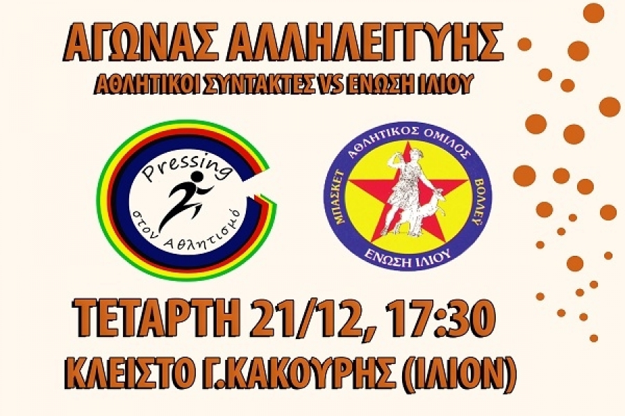 Ο αγώνας θα διεξαχθεί μεταξύ της Pressing Team και Μικτής Ομάδας όλων των Τμημάτων της Ένωσης Ιλίου. Η είσοδος στο κοινό θα είναι ελεύθερη. Αντί εισιτηρίου, οι διοργανωτές καλούν τους φιλάθλους να προσφέρουν εκπαιδευτικό υλικό και γραφική ύλη για την υποστήριξη των σκοπών της ΜΚΟ Διάδρασις.